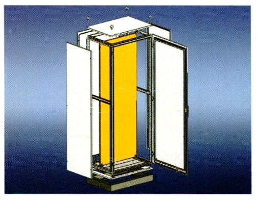 內(nèi)部框架采用優(yōu)質(zhì)冷軋鋼板一次加工成型的九折彎立柱,采用剛插件和焊接雙重連接組合成型,頂置吊環(huán)與鋼插件直接相連,保證架體的吊裝強度,框架動態(tài)承重600kg。四面圍板均可拆卸,方便內(nèi)部電氣設(shè)備的安裝和多個單柜并柜連接,框架立柱每隔25mm有一個符合DIN的安裝孔,令內(nèi)部電器元件的安裝和固定儀器更加方便快捷,內(nèi)部各種高度(200-1000mm)的模件分割區(qū)的門都能夠安裝到柜體的正面,使用PS柜的適用范圍進一步擴展。直觀的操作面板、模數(shù)化的內(nèi)部結(jié)構(gòu)、維護便捷的分段式活動門結(jié)構(gòu),使之成為經(jīng)典的配電系統(tǒng)控制柜。底板為多塊活動蓋板,保證走線方便靈活,底座可選擇固定式或拼裝式底座。