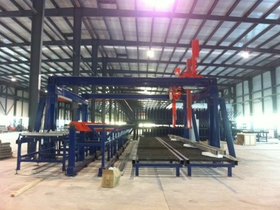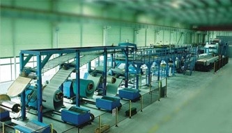 此套節能板材的設備,整套設備長100多米,包括開卷—電暈—壓筋—成型—雙履帶—發泡—飛剪—晾板—碼垛—打包等多種工序組成,我們做了其中開卷壓筋成型晾板碼垛工序的控制。