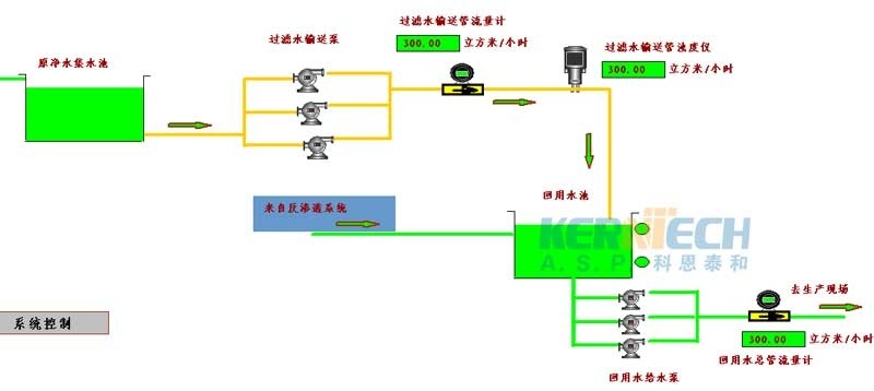 系統(tǒng)工程主要有以下幾部分組成,預(yù)處理部分,超濾部分,反滲透部分,回用水恒壓供水部分。