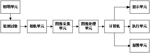 說明:本系統(tǒng)采用機器視覺技術對薄膜質量進行檢測,機器視覺檢測系統(tǒng)一般由以下幾個部分組成:照明單元、相機單元、圖像采集單元、圖像處理單元、計算機、顯示單元、執(zhí)行單元和報警單元,如下圖所示。