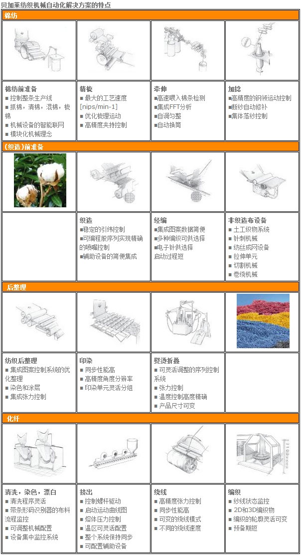 貝加萊(B&R)在紡織機械自動化領域有多年的應用經驗。許多著名的機械廠商信賴貝加萊的創新實力,實踐證明使用貝加萊產品能夠提高自身的優勢。貝加萊為所有類型的紡織機械提供集成的自動化解決方案,已成為尋求整體解決方案客戶的理想合作伙伴。