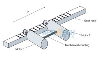 X軸共用了四個電機,同步驅動一個龍門,先單邊采用消隙控制,再兩邊同步,才能保證系統的控制精度。