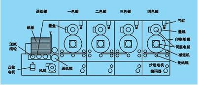 以高速雙面印刷機為例,其整機的動作控制部分由輸紙機、收紙機和主機三部分組成。主機除主電機,上、下水輥電機,制動輥電機分別由四個變頻器控制外,其余主要動作由七個氣缸分別來控制上水輥、下水輥、上墨輥、下墨輥、遞紙、上滾筒、下滾筒等的離合動作。氣路的控制分為手動和自動兩種模式。整機的核心調試工作就是電氣、氣動與機械動作相匹配,避免印刷中紙張的浪費。