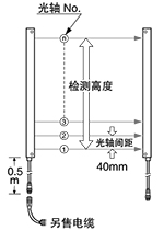 0.5mm2以上的電纜全長(zhǎng)可延長(zhǎng)至100m,適用于投光器和受光器 (但2個(gè)投光器間防干擾電線可延長(zhǎng)至20m) |