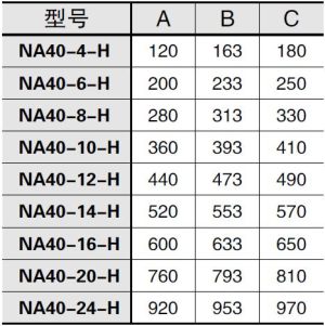 | 型號(hào) | NA40-4 | NA40-6 | NA40-8 | NA40-10 | NA40-12 | |