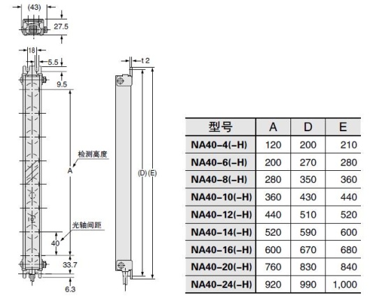 40mm光軸間距通用區(qū)域傳感器 NA40系列 NA40-4(NA40-4-H)