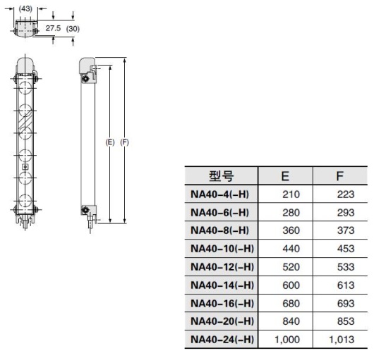 | 帶防濺帽型 | NA40-4-H | NA40-6-H | NA40-8-H | NA40-10-H | NA40-12-H | |