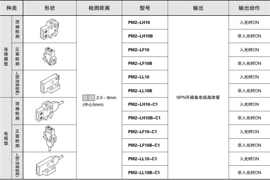 (注2):白色無光澤紙的檢測距離根據產品的變化可延長至12.5mm。