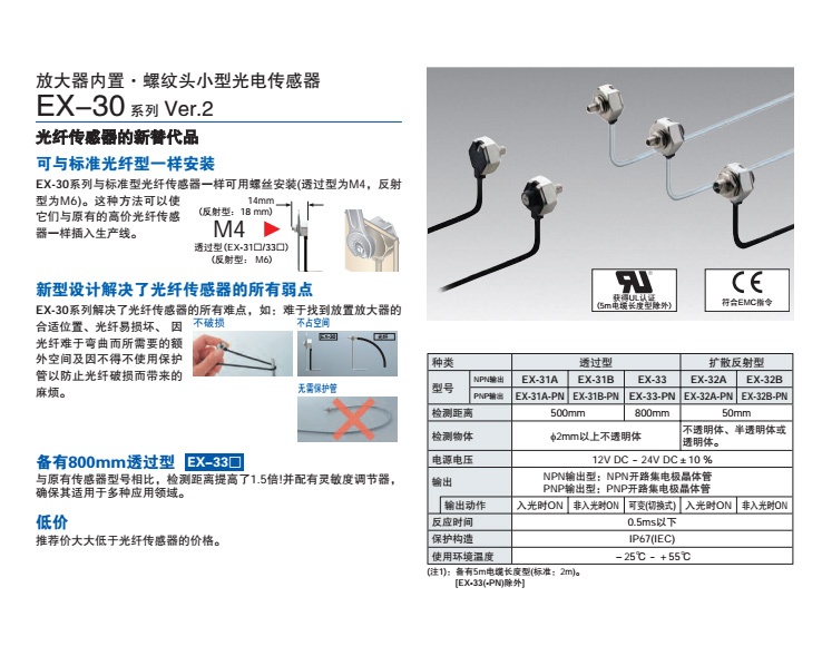 不僅獲得CE標志EMC指令認證、也獲得了UL認證。(電纜長為5m型除外)還備有在歐洲需求廣的PNP輸出型。