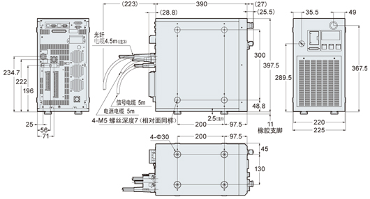 (注1):未安裝橡膠支腳狀態下的凸出部的高度。另外,橡膠支腳可更換使用到任意一個側面。