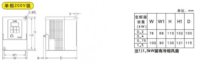 ·200V系列型:0.4-1.5kW電阻內(nèi)藏(0.2kW電路沒有制動(dòng)電路和制動(dòng)電阻;0.4kW是外部設(shè)置的同包裝電阻)