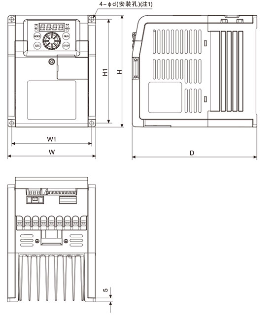 變頻器容量 W1 W H1 H D Φd
