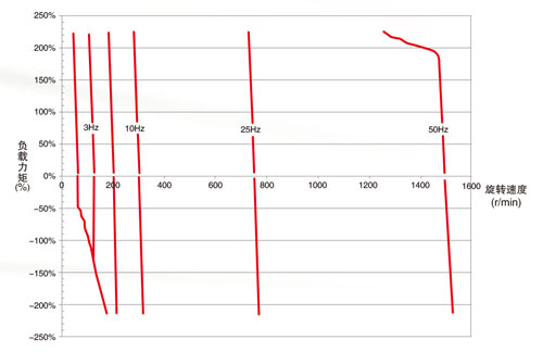在低速0.5Hz時,可以實現200%轉矩輸出(0.75~3.7kW無傳感器矢量控制模式下)。