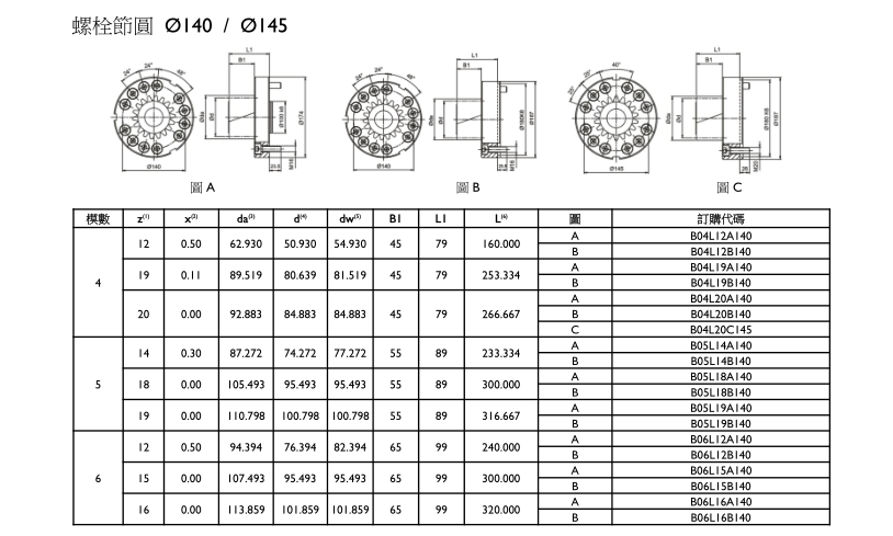 APEX臺(tái)灣精銳斜齒齒輪(焊接式 / EN ISO 9409-I-A) 精度等級(jí) Quality DIN 4 / 合金鋼 螺栓節(jié)圓Φ140 / Φ145 (模數(shù)M:4、5、6)