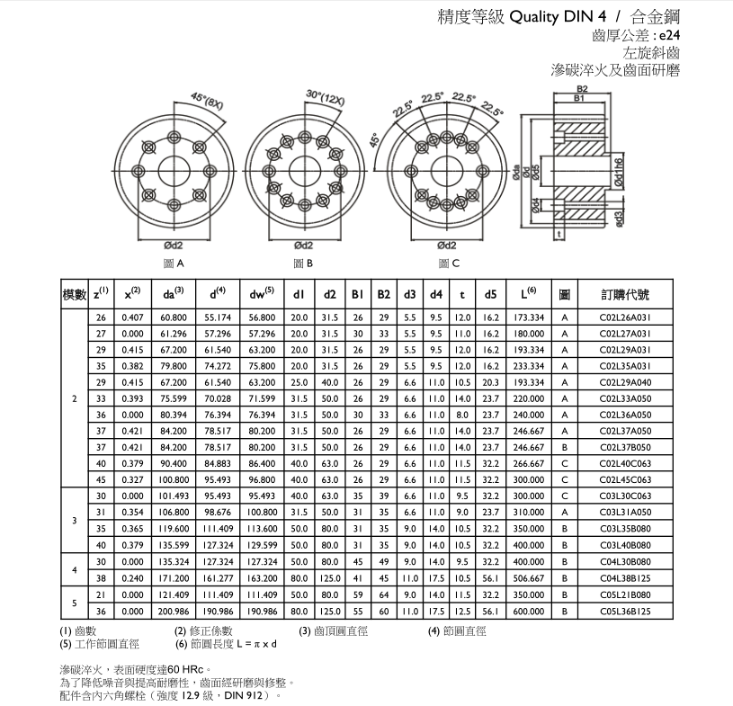 APEX臺(tái)灣精銳斜齒齒輪(直鎖式 / EN ISO 9409-I-A) 精度等級(jí) Quality DIN 4 / 合金鋼 (模數(shù)M:2、3、4、5)