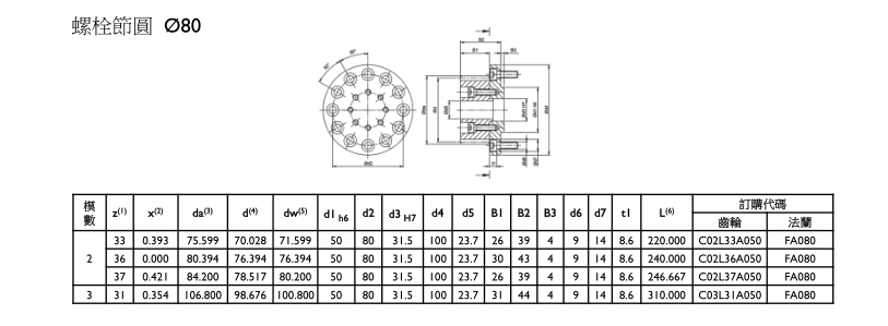 APEX臺(tái)灣精銳斜齒齒輪(直鎖式 / EN ISO 9409-I-A) 精度等級(jí) Quality DIN 4 / 合金鋼 螺栓節(jié)圓Φ80 (模數(shù)M:2、3)