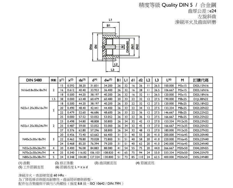 APEX臺灣精銳斜齒齒輪(DIN 5480 / 花鍵) 精度等級 Quality DIN 5 / 合金鋼 (模數M:1.5、2、3、4、5)