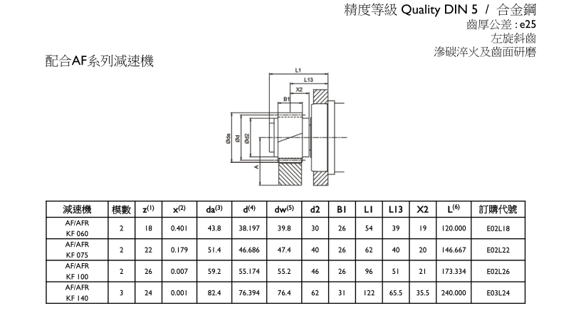APEX臺(tái)灣精銳斜齒齒輪(鍵槽式 / 配合APEX AF系列減速機(jī)) 精度等級(jí) Quality DIN 5 / 合金鋼 (模數(shù)M:2、3)