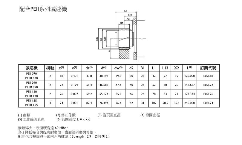 APEX臺灣精銳斜齒齒輪(鍵槽式 / 配合APEX PEII系列減速機(jī)) 精度等級 Quality DIN 5 / 合金鋼 (模數(shù)M:2、3)