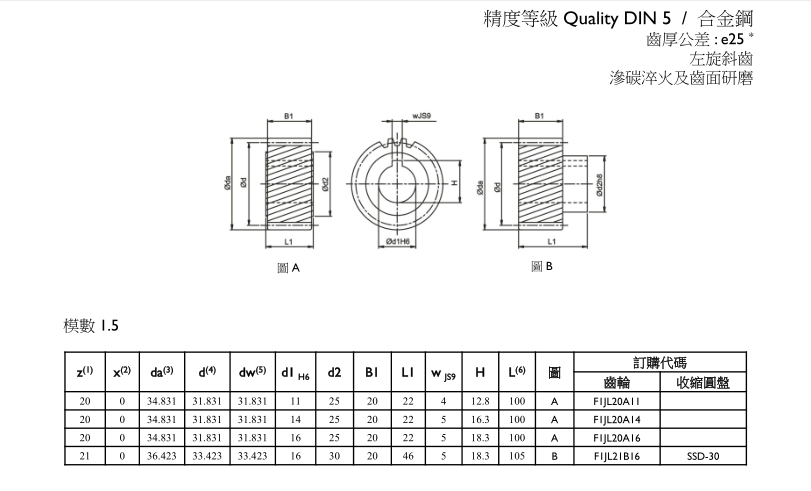APEX臺灣精銳斜齒齒輪(鍵槽式 ) 精度等級 Quality DIN 5 / 合金鋼 (模數M:1.5)
