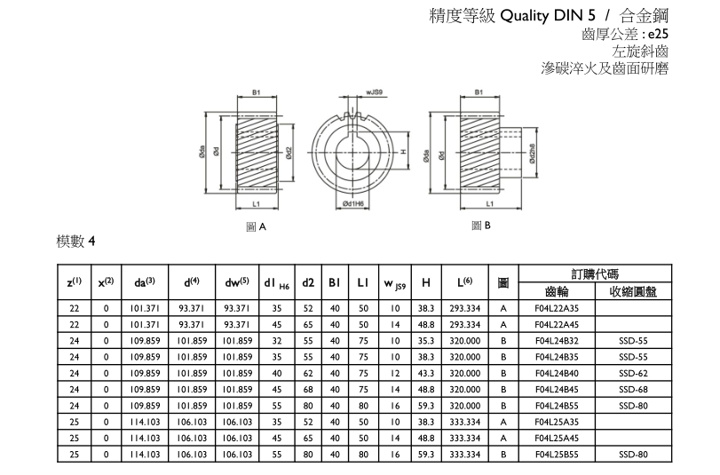 APEX臺灣精銳斜齒齒輪(鍵槽式 ) 精度等級 Quality DIN 5 / 合金鋼 (模數M:4)