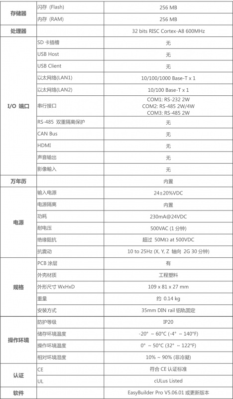 - 支持 MODBUS TCP/IP 閘道功能