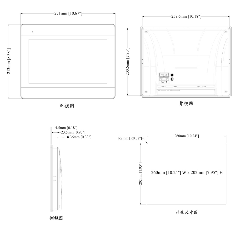 人機界面(HMI)-cMT Series cMT3103,10.1" 1024 x 600 TFT LCD, LED背光燈。