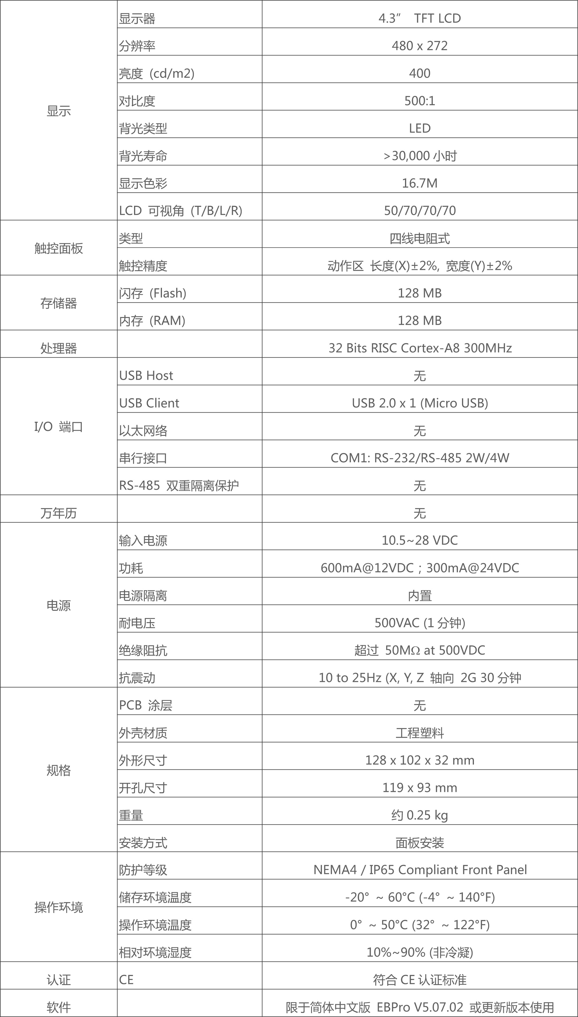 人機(jī)界面(HMI)-TK Series TK6051iP,4.3" 480x272 TFT LCD, LED 背光燈,無風(fēng)扇冷卻系統(tǒng)。