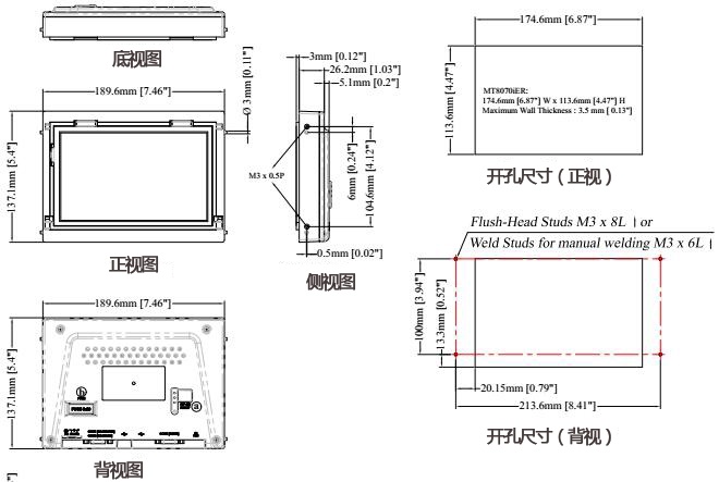 - 背鎖式人機界面能輕松安裝于嵌入式應用環境,固定支撐架可對應控制箱的板厚