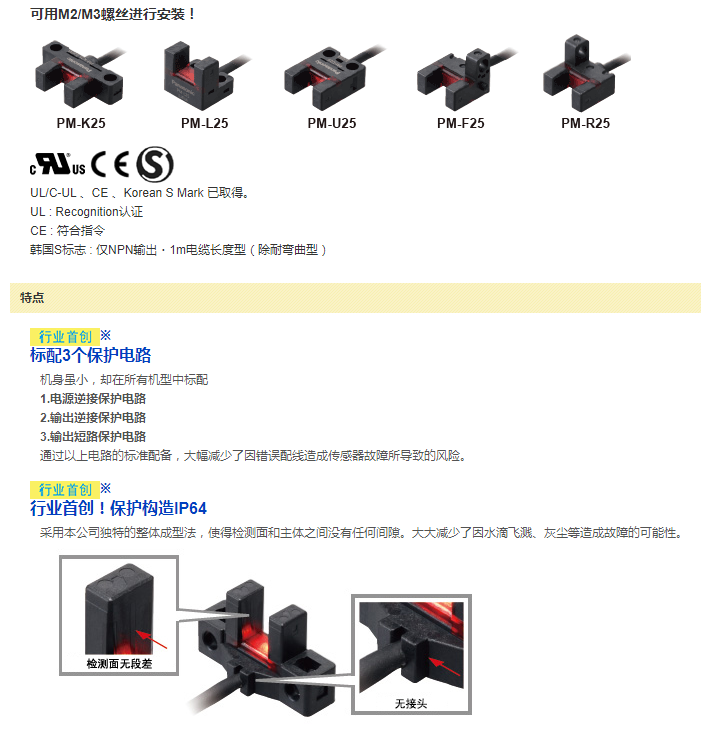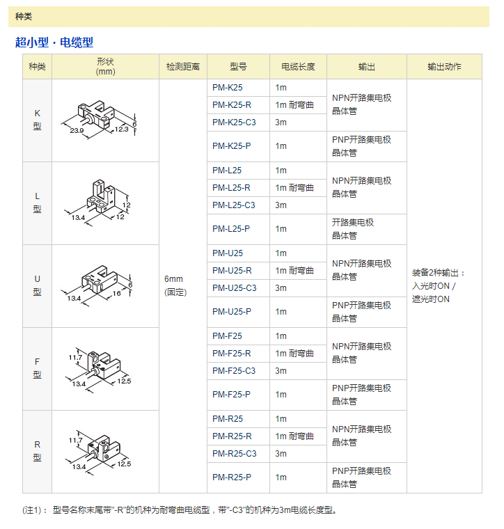放大器內(nèi)置?U型微型光電傳感器[超小型?電纜型] PM-25系列